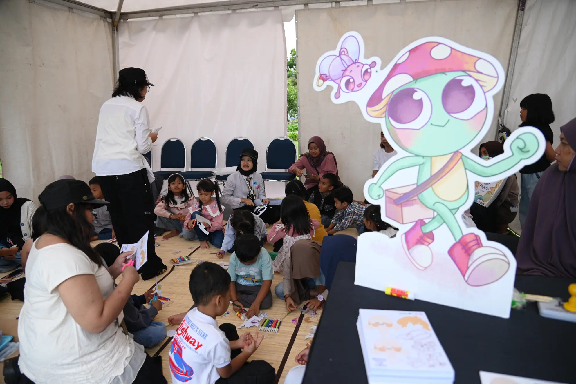 Di Pojok Kreatif, anak-anak dapat mengikuti sesi bercerita, membuat boneka, dan melakukan eksperimen ilmiah sederhana. Aktivitas ini menjadi ruang bermain sekaligus belajar yang memperkenalkan sains lewat pendekatan yang dekat dengan keseharian.